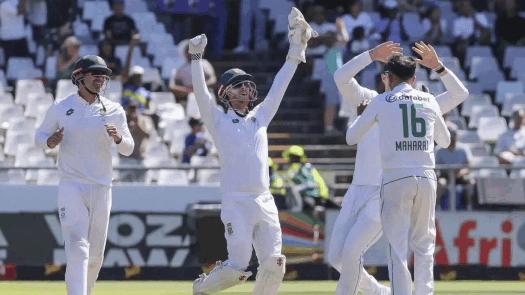 PAK vs SA Test लाहौर, 2025 – पाकिस्तान और दक्षिण अफ्रीका के बीच खेले जा रहे पहले टेस्ट मैच का दूसरा दिन बेहद रोमांचक रहा। गद्दाफी स्टेडियम में पाकिस्तान ने अपनी स्थिति मजबूत कर ली है। दक्षिण अफ्रीका ने पहले बल्लेबाजी करते हुए 238 रन बनाए, जबकि पाकिस्तान ने अपनी पहली पारी में 313/5 रन बनाकर दिन का खेल समाप्त किया। इस प्रकार, पाकिस्तान इस समय मैच में मामूली बढ़त के साथ आगे है।